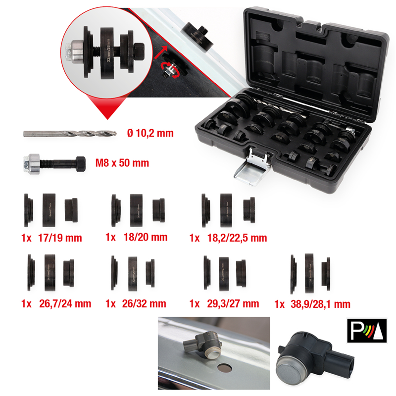 Komplet za vrtanje lukenj za senzorje razdalje (PDC), 23-delna KS Tools 140.2650