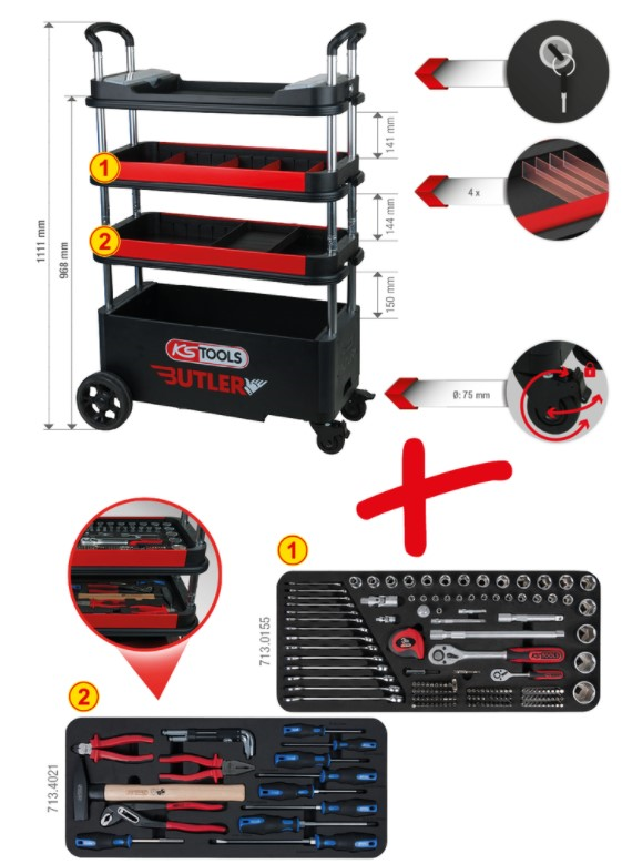 z dodatnim potisnim odlagalnim mestom za srednja odlagalna mesta (za majhne dele, kljunasta merila itd.)
